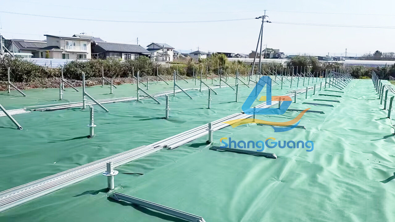 solar Anti-grass Green sheet is used for preventing weeds in the field of the solar farm or power station .